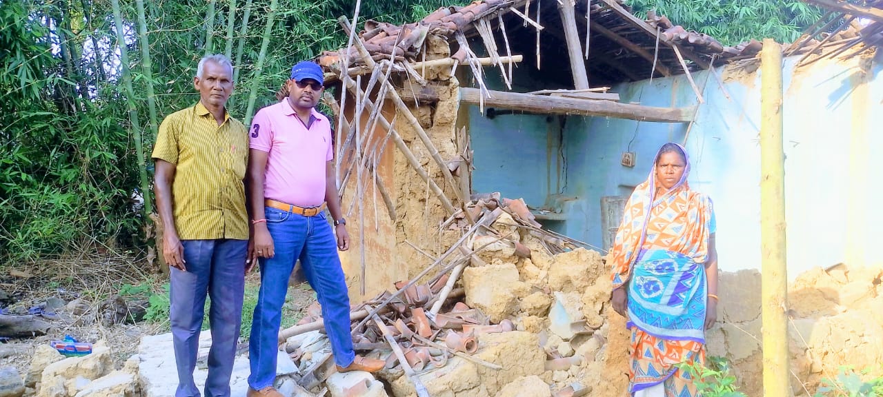 पोटका: डालसा सचिव धर्मेंद्र कुमार के निर्देश पर घिरोल पंचायत अंतर्गत चेमाईजुड़ी गांव निवासी कालोमती गोप से मिले डालसा के पी एल वी उसके टूटे हुए घर को देखा और आपदा से हुए क्षति की जानकारी ली बीते सप्ताह रात को आए बारिश के साथ तेज हवा ने उसके घर के ऊपर कहर बन कर टूट पड़ा था। सर छिपाने के लिए जो एक मात्र घर था उसके घर की दीवारों गिर गई भाग्य से उसके परिवार बाल बाल बच गया उस मनहूस रात में भी हमेशा की तरह उसी घर में सटे बरेंदे में पीड़िता का परिवार सोया हुआ था।प्राकृति की प्रकोप से विधवा को बेघर कर दिया। पी एल वी चयन कुमार मंडल एवम छाकु माझी ने सारे वस्तुस्थिति से अवगत होते हुए पीड़िता से एक आवेदन अंचल अधिकारी पोटका के नाम से मुआवजा दिलवाने के लिए लिया गया एवं त्वरित कार्रवाई करते हुए आवेदन अंचल अधिकारी कार्यालय पोटका में जमा कर दिया गया साथ ही क्षेत्रीय कर्मचारी को पीड़िता के आवेदन के आधार पर जांच कर त्वरित रिपोर्ट अंचल को सौंपने के लिए आग्रह किया गया ताकि समय पर पीड़िता को उचित मुआवजा मिल जाए। मौके पर कालोमती गोप के साथ डालसा के पी एल वी चयन कुमार मंडल एवं छाकु माझी मौजूद थे।