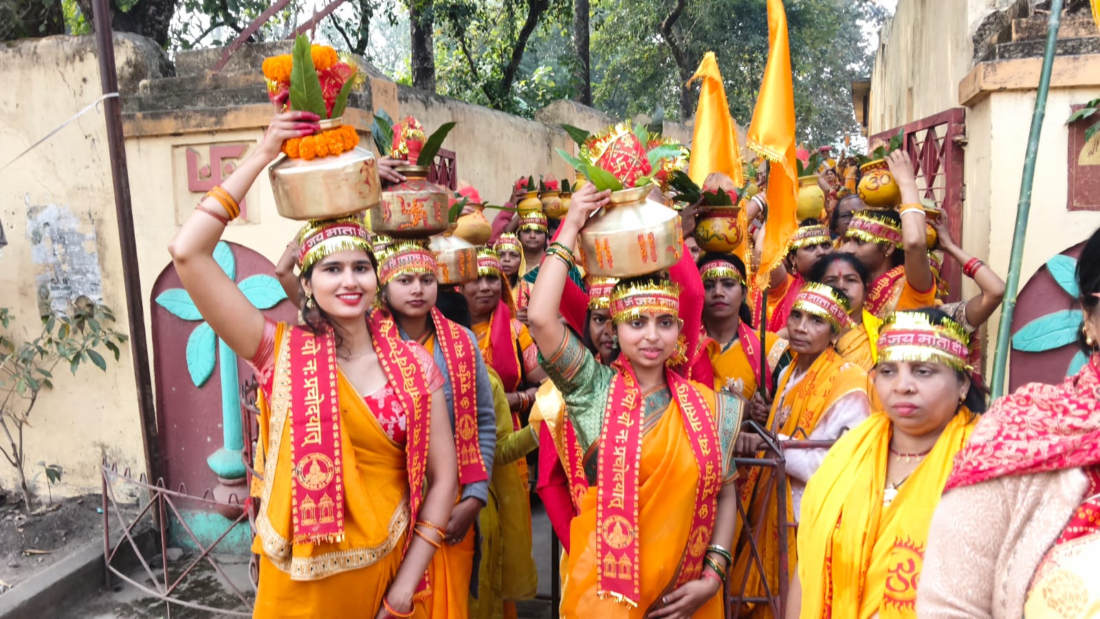 अखिल विश्व गायत्री परिवार की ओर से 108 कलशों के साथ भव्य कलश यात्रा निकाली गई