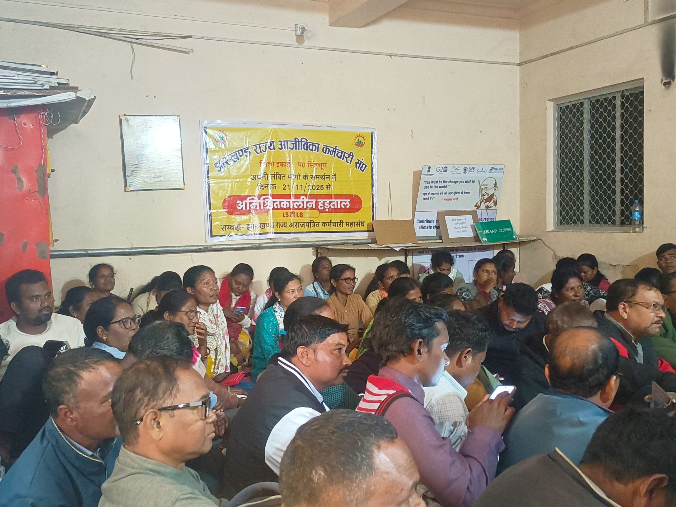अनिश्चितकालीन हड़ताल पर गए JSLPS कर्मी, जिला कार्यालय में‌ प्रदर्शन जारी