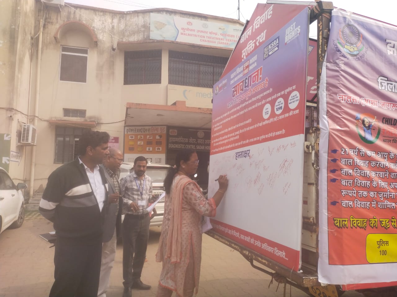 बाल विवाह के खिलाफ जागरूकता रथ ने सदर अस्पताल परिसर में लोगों को किया जागरूक
