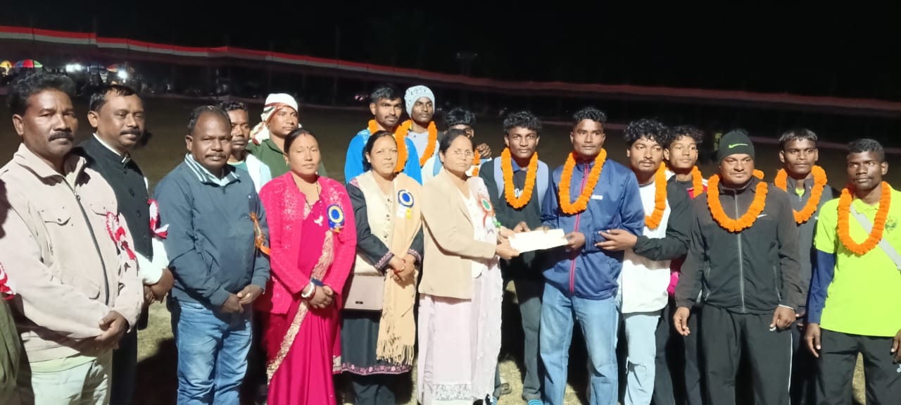 प्रतियोगिता का फाइनल मैच मस्ती बाबा एफसी व जोकलो एफसी के बीच खेला गया. जिसमें मस्ती बाबा की टीम विजेता रही. विजेता टीम को 30 हजार रुपए व उपविजेता रहे जोकलो एफसी की टीम को 20 हजार रुपए नगद राशि देकर अतिथियों के द्वारा पुरस्कृत किया गया. वहीं तीसरे स्थान पर रहे वीर सिंह ब्रदर्स व चौथे स्थान पर रहे बच्चन ब्रदर्स तोरसिंदरी की टीम को 10-10 हजार रुपए नगद राशि देकर पुरस्कृत किया गया. वही 40 प्लस में विजेता रहे टीमों को भी खस्सी देकर पुरस्कृत किया गया.
