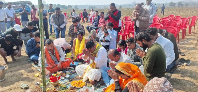 भागवत कथा के भव्य आयोजन को लेकर हल्दीपोखर में भूमि पूजन कार्यक्रम आयोजित