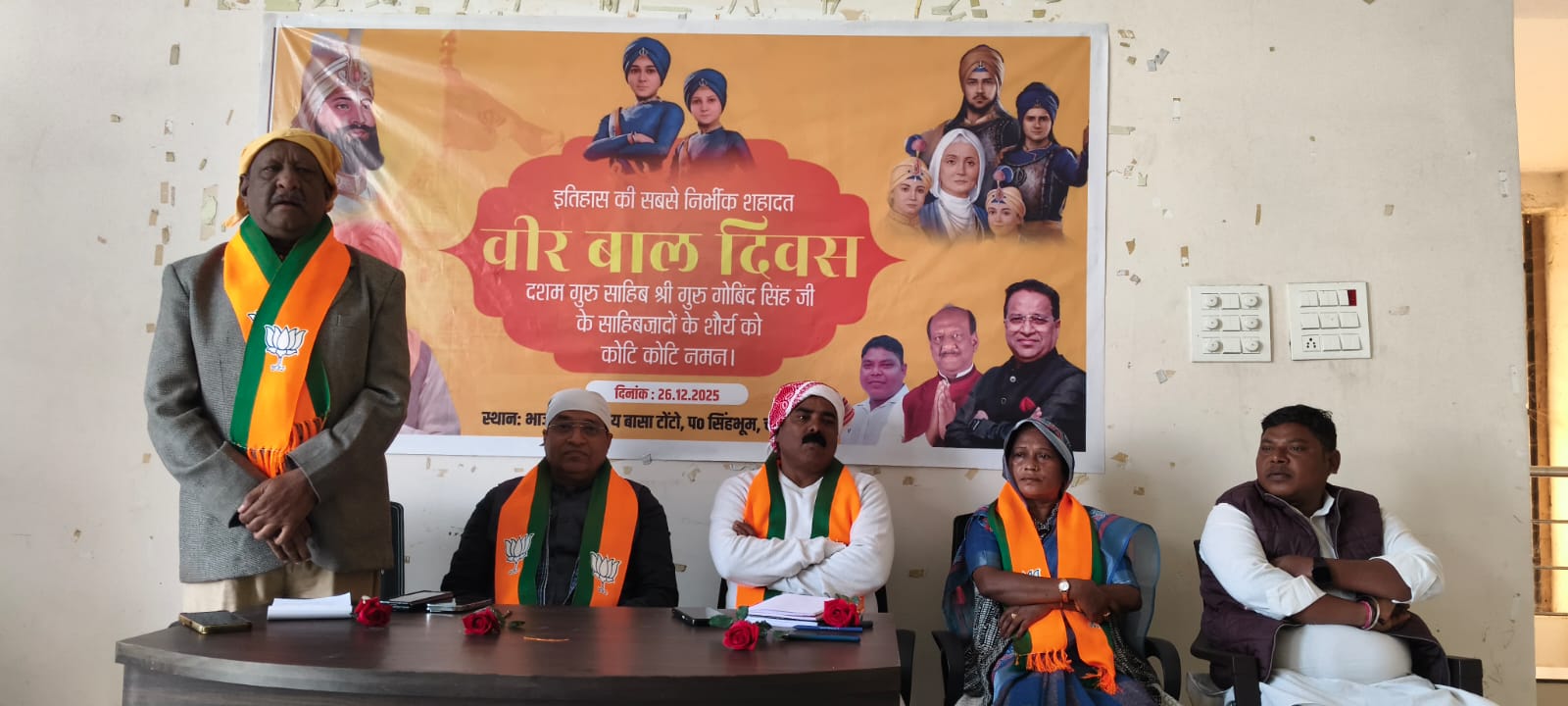 चाईबासा(प्रकाश कुमार गुप्ता): भारतीय जनता पार्टी जिला कार्यालय, पश्चिमी सिंहभूम में शुक्रवार को वीर बाल दिवस कार्यक्रम का आयोजन जिला अध्यक्ष संजय पांडे के नेतृत्व में किया गया। कार्यक्रम में जमशेदपुर से आए कुलवंत सिंह बंटी मुख्य अतिथि के रूप में उपस्थित रहे।