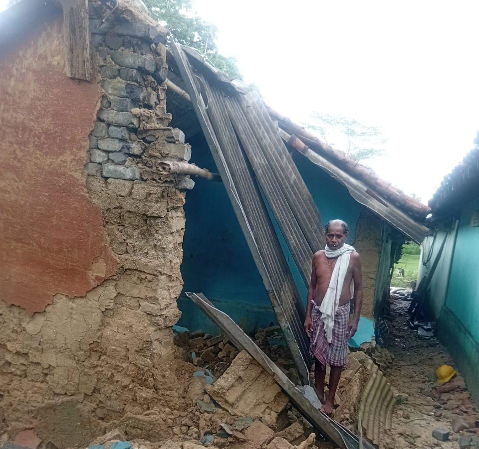 भारी बारिश का कहर: राजनगर में सिद्धू महतो का घर ढहा, प्रशासन से मदद की गुहार