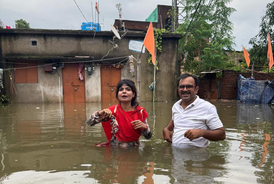 भाटिया बस्ती में बाढ़ का कहर, लोगों की जान बचाने खुद पानी में उतरी अफसर पारुल सिंह”