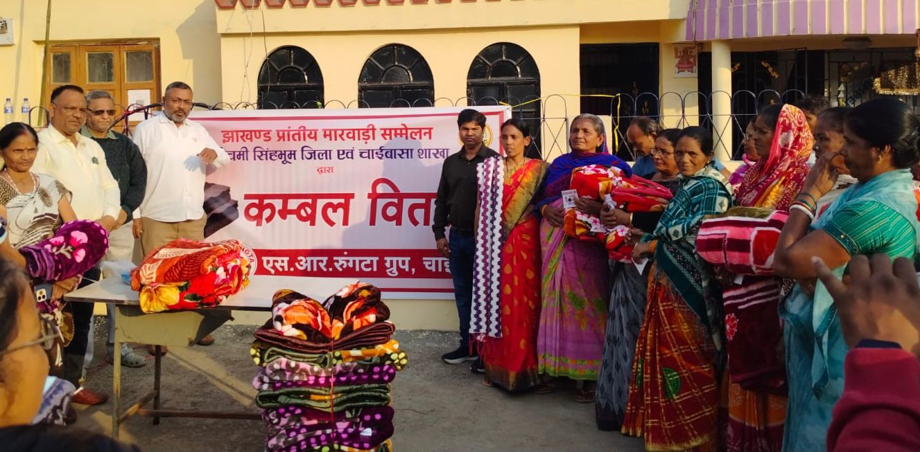 चाईबासा: जनमानस को सर्दियों की ठंड से राहत देने के उद्देश्य से झारखंड प्रांतीय मारवाड़ी सम्मेलन की पश्चिम सिंहभूम जिला शाखा और मारवाड़ी सम्मेलन चाईबासा शाखा के संयुक्त तत्वावधान में कंबल वितरण कार्यक्रम आयोजित किया गया। इस कार्यक्रम में एस॰ आर॰ रुंगटा ग्रुप के सहयोग से स्थानीय महादेव कालोनी और फ्लावर मिल क्षेत्र के जरूरतमंद लोगों को कंबल वितरित किए गए।