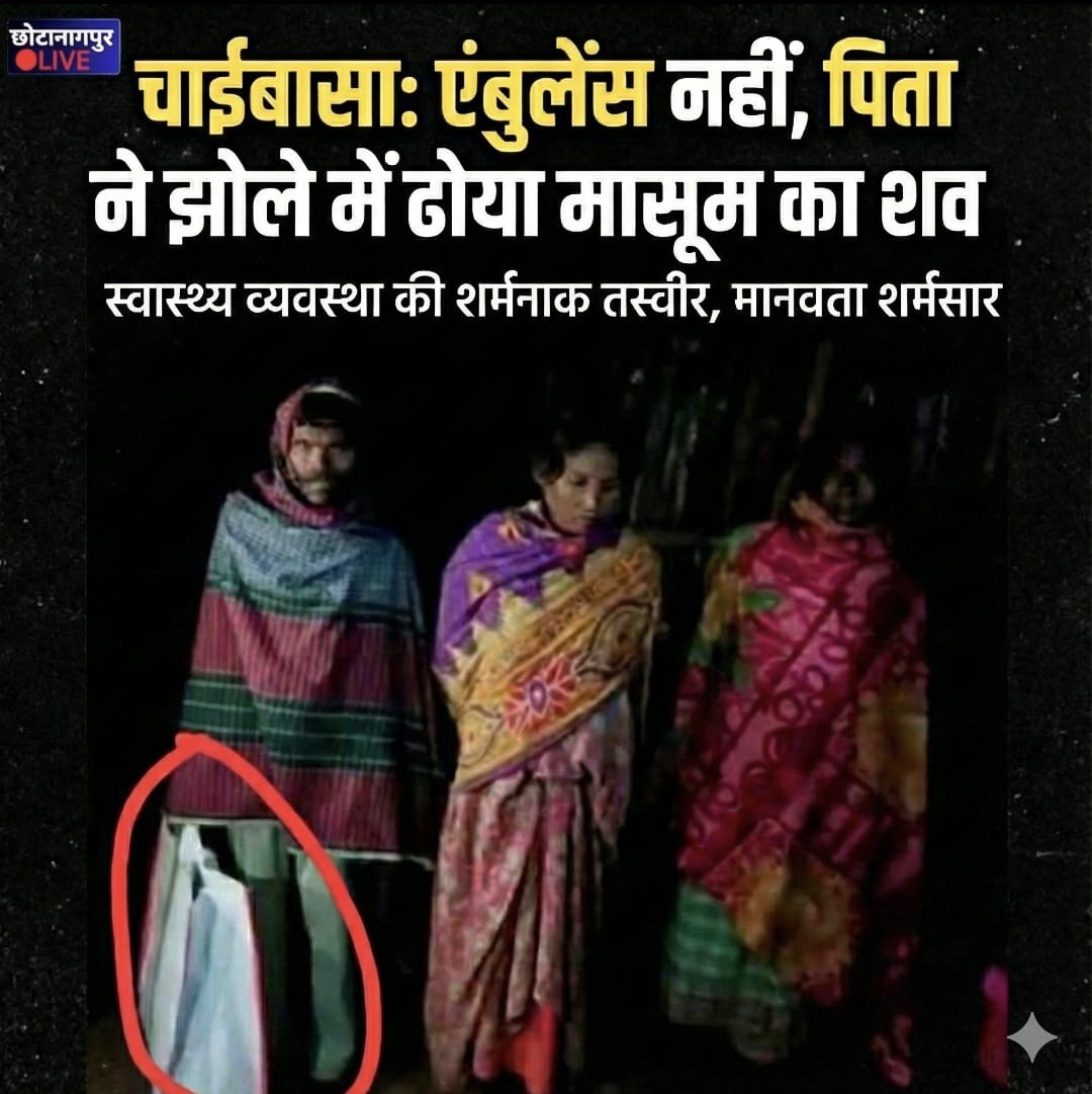 चाईबासा में स्वास्थ्य व्यवस्था की बदहाली उजागर, एंबुलेंस के अभाव में पिता ने झोले में ढोया मासूम का शव