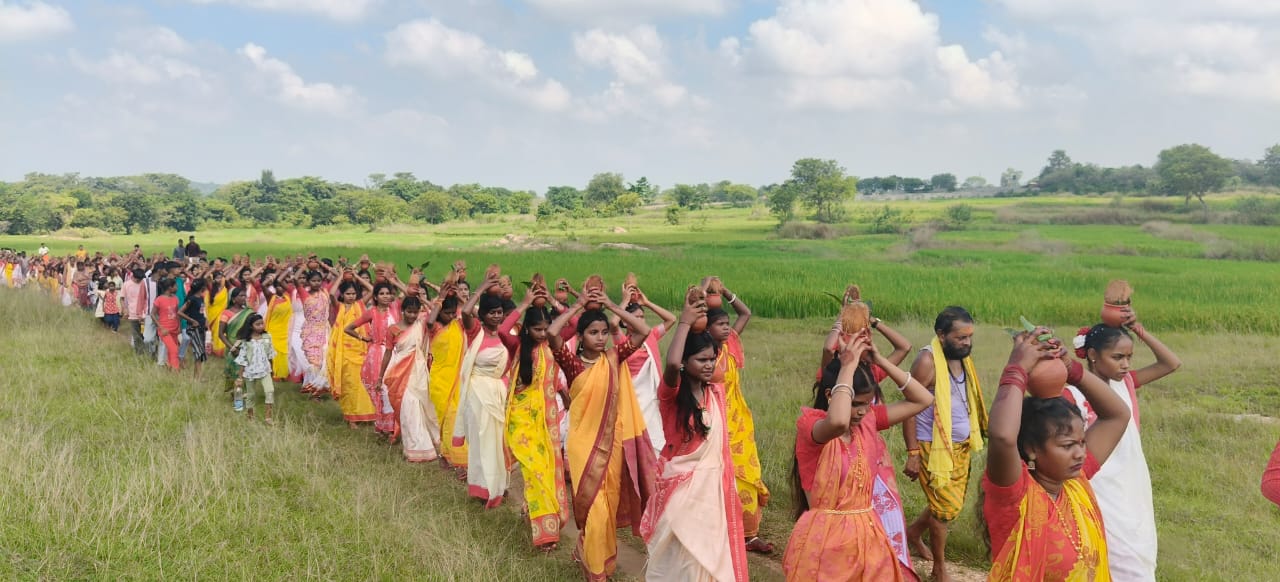दुर्गापूजा को लेकर क्षेत्र हर्षोल्लास का माहौल है,वहीं राजनगर प्रखंड के एदल पंचायत अंतर्गत गोलो कुटुंग में दुर्गा सप्तमी पर 151 कन्याओं द्वारा कलश यात्रा निकाली गई,वहीं गाँव के समीप नदी से कलश में जल लेकर मंदिर प्रांगण पहुँची, और कलश स्थापित की गई ,मौके पर सैकड़ो की संख्या में श्रद्धालु पूजा अर्चना करने पहुँचे,वहीं समाज कल्याण समिति के सचिव रामेश्वर दास ने बताया गोलो कुटुंग में वर्ष 1977 से दुर्गा पूजा होती आ रही है,जहाँ कमेटी के सदस्यों के प्रयास से प्रतिवर्ष धूमधाम व शांतिपूर्ण वातावरण में दुर्गापूजा संपन्न की जाती है,दुर्गा पूजा के दौरान रात्रि बेला में तरह तरह के कार्यक्रम भी आयोजित की जाती है,वहीँ इस वर्ष सप्तमी की रात्रि गाँव के बच्चों का डांस प्रतियोगिता होगी,महाअष्ठमी पर बरीपदा के मशहूर झुमर संगीत कार द्वारा झुमुर संगीत कार्यक्रम रखा गया है,वहीं महानवमी को डांस प्रतियोगिता आयोजित की गई है,वहीं विजय दशमी को माँ दुर्गा की प्रतिमा का विषर्जन किया जायेगा,