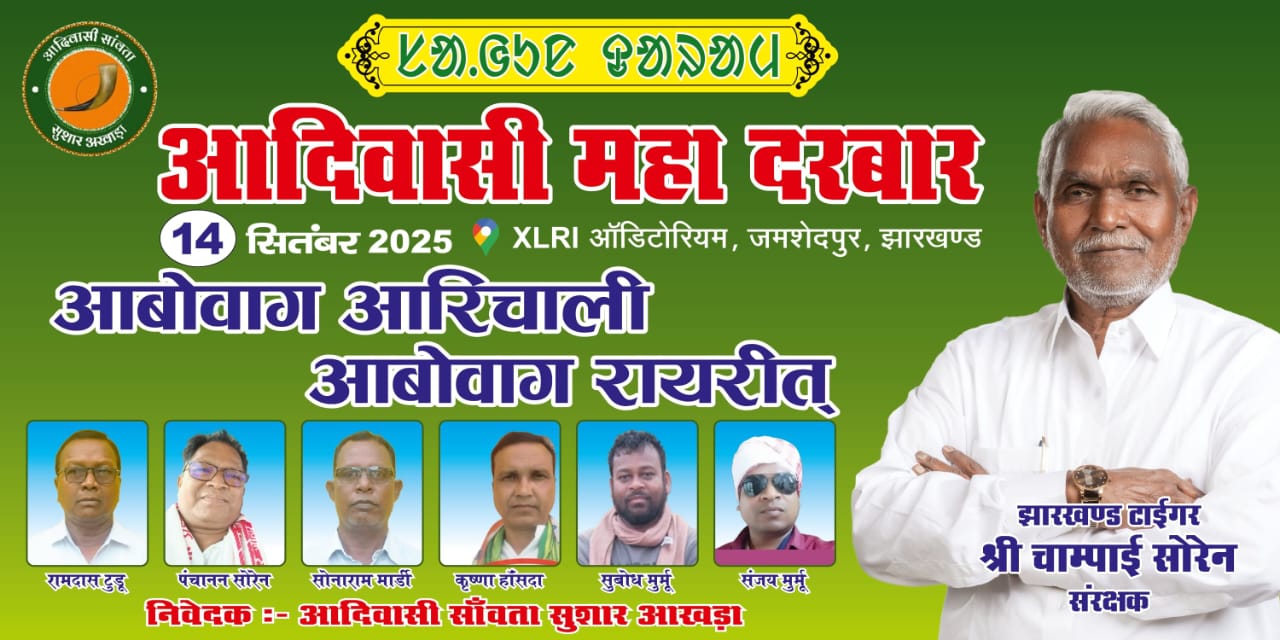 झारखंड के पूर्व मुख्यमंत्री चंपाई सोरेन के नेतृत्व में आगामी 14 सितंबर को जमशेदपुर के एक्सएलआरआई ऑडिटोरियम में “आदिवासी महा दरबार” का भव्य आयोजन किया जाएगा। यह कार्यक्रम आदिवासी समाज के संवैधानिक अधिकारों, परंपराओं, सामाजिक सरोकारों और एकजुटता को लेकर व्यापक मंथन का मंच बनेगा।