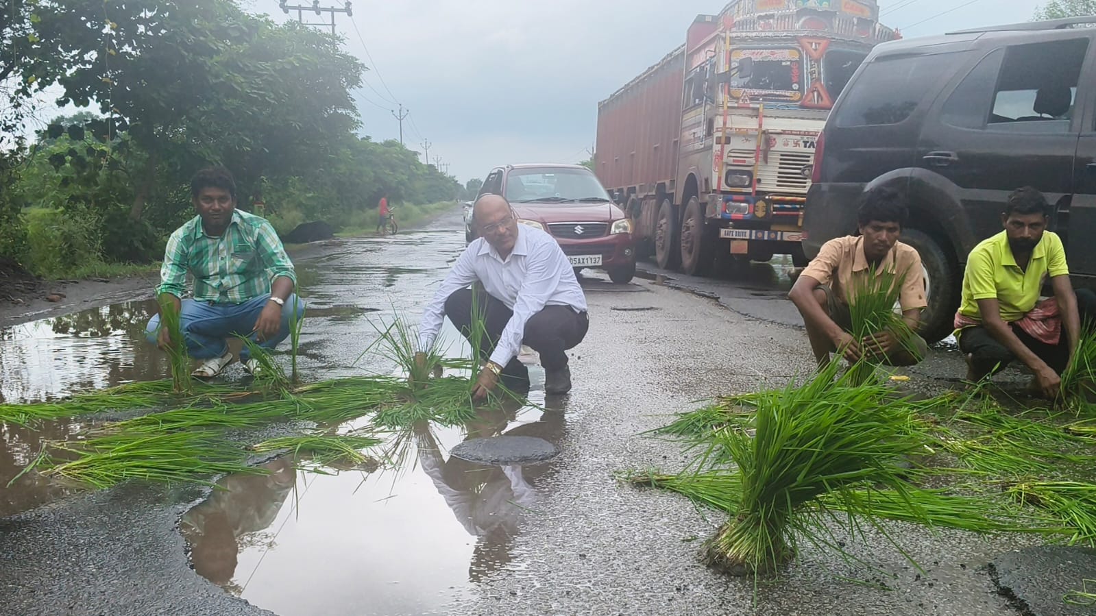 सरायकेला: कोल्हान की जीवन रेखा मानी जाने वाली टाटा-कांड्रा-सरायकेला-चाईबासा मुख्य सड़क की जर्जर हालत को लेकर जनता का गुस्सा अब उबाल पर है। सड़क की बदहाली के खिलाफ शनिवार को सरायकेला नगर पंचायत के पूर्व उपाध्यक्ष मनोज कुमार चौधरी ने सड़क पर धान रोप कर अनोखे अंदाज में विरोध प्रदर्शन किया।