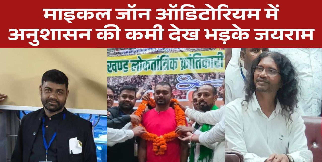 माइकल जॉन ऑडिटोरियम में अनुशासन की कमी देख भड़के जयराम, कूकड़ाडीह सभा भी कुप्रबंध की वजह से रहा फ्लॉप, आरोप लाखों का चंदा उठाकर डकार गए कुछ क्रांतिकारी