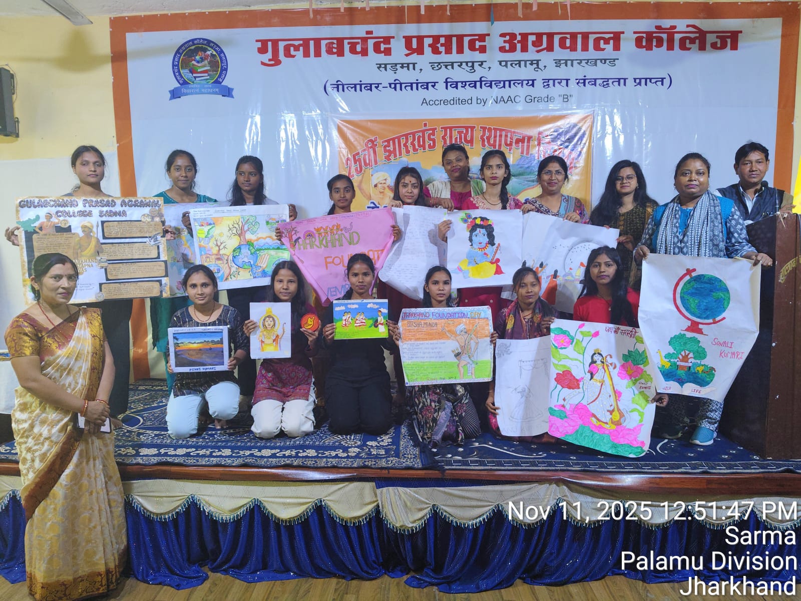 छतरपुर,पलामू में झारखंड राज्य स्थापना दिवस समारोह 2025 के शुभ अवसर पर दिनांक 11 नवंबर से 14 नवंबर तक विभिन्न कार्यक्रमों (पेंटिंग, क्विज,निबंध,भाषण प्रतियोगिता) का शुभारंभ किया गया।