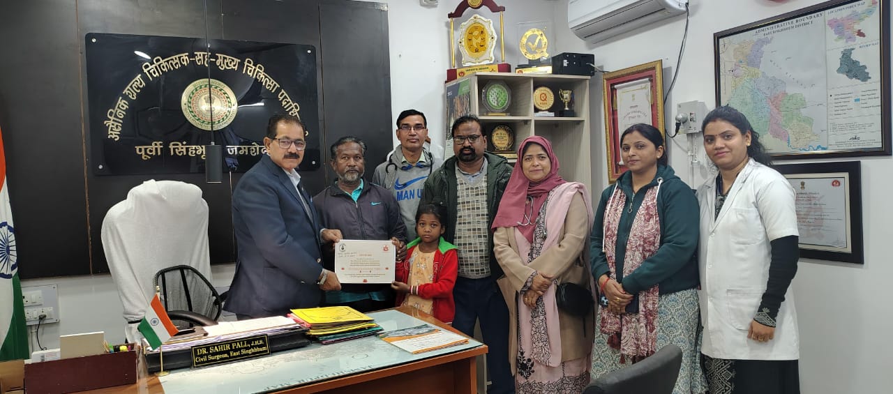 इस मानवीय पहल में सिविल सर्जन पूर्वी सिंहभूम डॉ. साहिर पाल की अहम भूमिका रही। उनके प्रयास से सावित्री को सरकारी योजना के तहत न केवल नि:शुल्क इलाज की सुविधा मिली, बल्कि आने-जाने सहित संपूर्ण उपचार की व्यवस्था भी की गई। बच्ची के सकुशल लौटने पर 13 दिसंबर 2025 को सिविल सर्जन कार्यालय में उसका स्वागत किया गया और उसके उज्ज्वल एवं स्वस्थ भविष्य की कामना की गई।