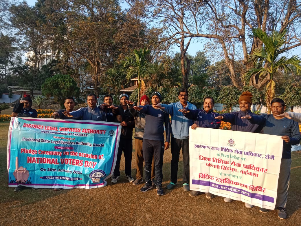 चाईबासा(प्रकाश कुमार गुप्ता): झारखंड राज्य विधिक सेवा प्राधिकार, रांची के निर्देशानुसार जिला विधिक सेवा प्राधिकार, चाईबासा के तत्वावधान में 25 जनवरी 2026 को राष्ट्रीय मतदाता दिवस के अवसर पर शाहिद पार्क, चाईबासा में मतदाता जागरूकता अभियान चलाया गया। यह कार्यक्रम प्रधान जिला एवं सत्र न्यायाधीश सह जिला विधिक सेवा प्राधिकार के अध्यक्ष मोहम्मद शाकिर और सचिव रवि चौधरी के मार्गदर्शन में आयोजित किया गया।