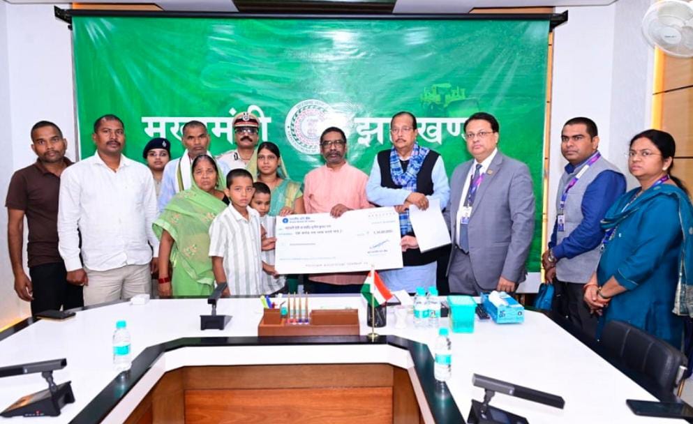 रांची: मुख्यमंत्री हेमंत सोरेन ने कांके रोड स्थित आवासीय कार्यालय में पलामू जिला बल के शहीद आरक्षी सुनील कुमार राम और संतन कुमार मेहता के परिजनों को 1 करोड़ 10 लाख रुपए की सम्मान राशि का चेक सौंपा। यह राशि स्टेट बैंक ऑफ इंडिया और राज्य सरकार के संयुक्त प्रयास से दोनों परिवारों के खातों में जमा की गई।