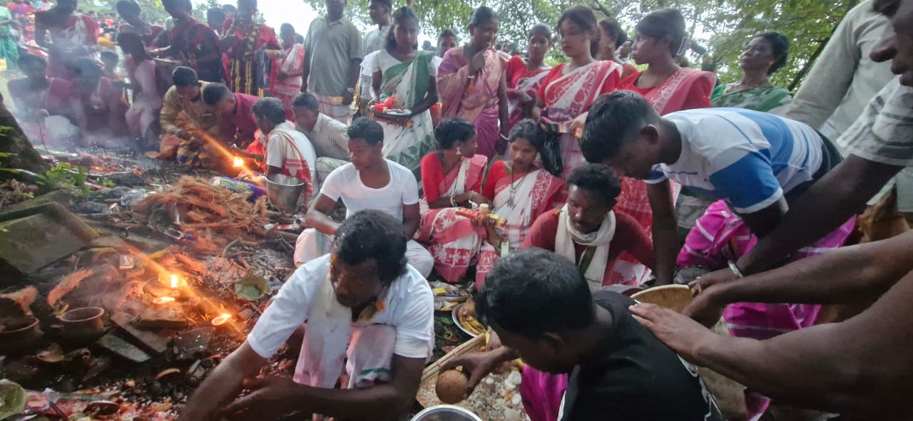 पर्व की शुरुआत गांव के नायके बाबा डापटा मुर्मू द्वारा पूजा-अर्चना से हुई। उन्होंने पशुधन, फसलों और प्रकृति की समृद्धि की कामना करते हुए सामूहिक प्रार्थना की। पूजा के बाद मांदर और ढोल की थाप गूंजने लगी, जिस पर महिलाएं और पुरुष पारंपरिक संथाली गीतों की धुन पर झूम उठे।