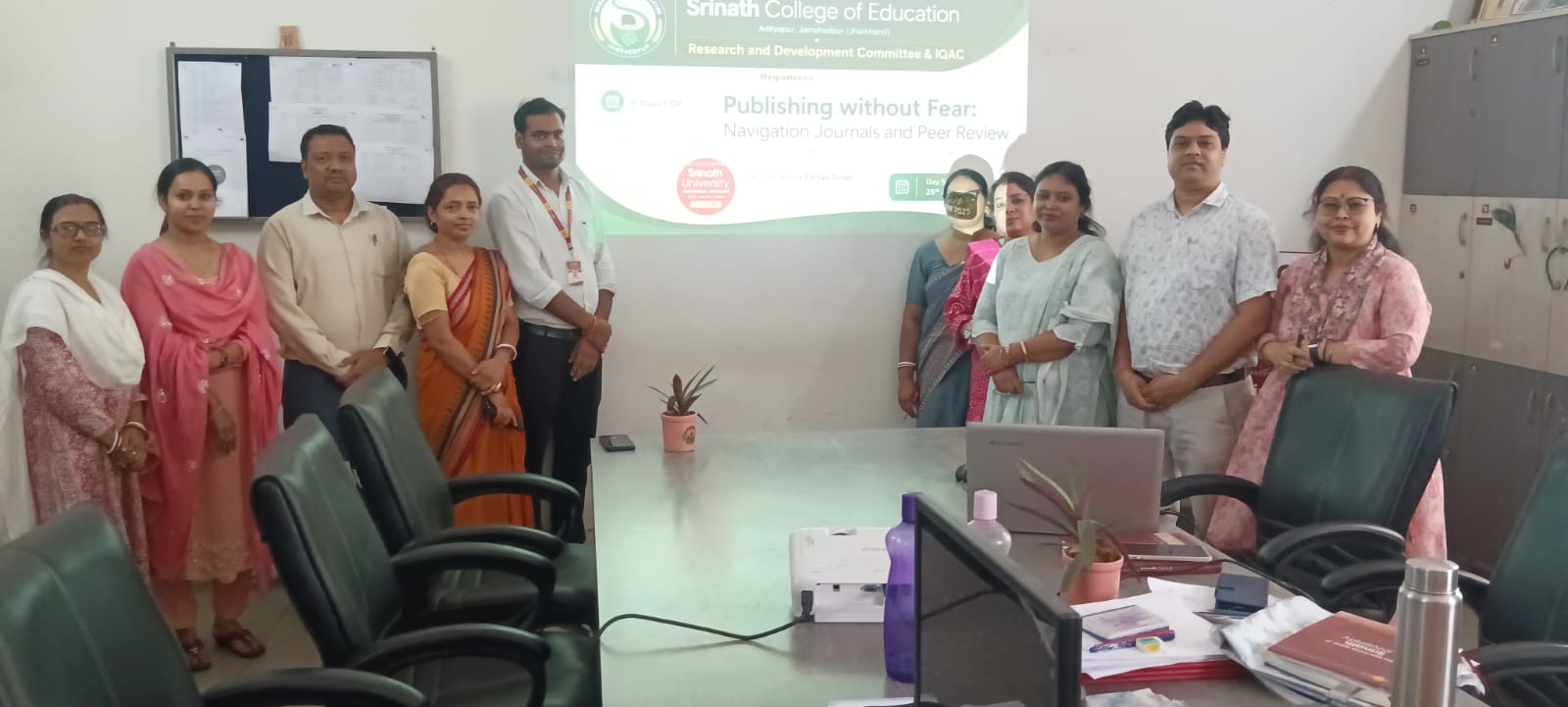आदित्यपुर स्थित श्रीनाथ कॉलेज ऑफ एजुकेशन में “रिसर्च एंड डेवलपमेंट कमिटी” के तत्वावधान में आयोजित पाँच दिवसीय फैकल्टी डेवलपमेंट प्रोग्राम (FDP) का सफलतापूर्वक समापन 25 अप्रैल 2026 को हुआ। यह कार्यक्रम “सिस्टेमैटिक वे ऑफ रिसर्च पेपर राइटिंग” विषय पर आधारित था, जिसमें शोध लेखन की आधुनिक तकनीकों एवं अकादमिक मानकों पर विस्तृत प्रशिक्षण दिया गया।