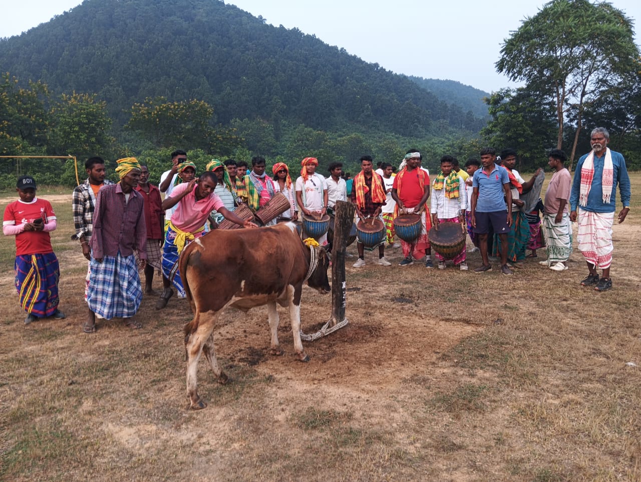 सुदूरवर्ती ग्रामों में सोहराय की धूम,पारंपरिक गीत संगीत के साथ बेल खुटान का आयोजन।