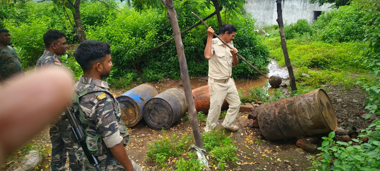 पर छापामारी की। इस दौरान बड़ी मात्रा में अवैध महुआ शराब जब्त की गई। नदी किनारे रखे करीब 500 लीटर जावा महुआ से भरे गैलन को नष्ट कर दिया गया, साथ ही कई शराब भट्टियों को भी तोड़ा गया।